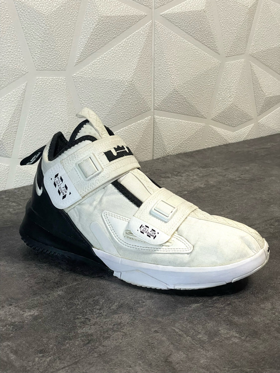 این کتانی مدل Nike LeBron Soldier 12 SFG است که یک کفش بسکتبال با عملکرد بالاست و بخشی از سری فرعی لبران جیمز محسوب میشود. ویژگی اصلی این مدل، سیستم تسمههای دوگانه آن است که پا را به صورت فوقالعاده محکم قفل میکند. این کفش، که برای قدرت و حمایت در زمین طراحی شده، از بالشتکگذاری Nike Zoom Air برای جذب ضربه و راحتی حین بازی بهره میبرد.