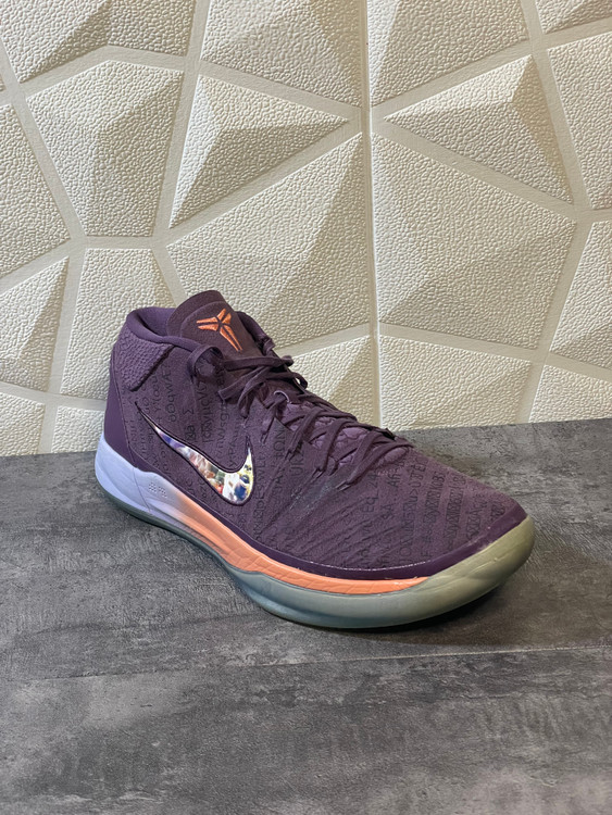 طراحی زیره: دارای زیره شفاف (Icy Blue) و میانزیره نارنجی رنگ که تضاد جذابی با بدنه تمام بنفش ایجاد کرده است.