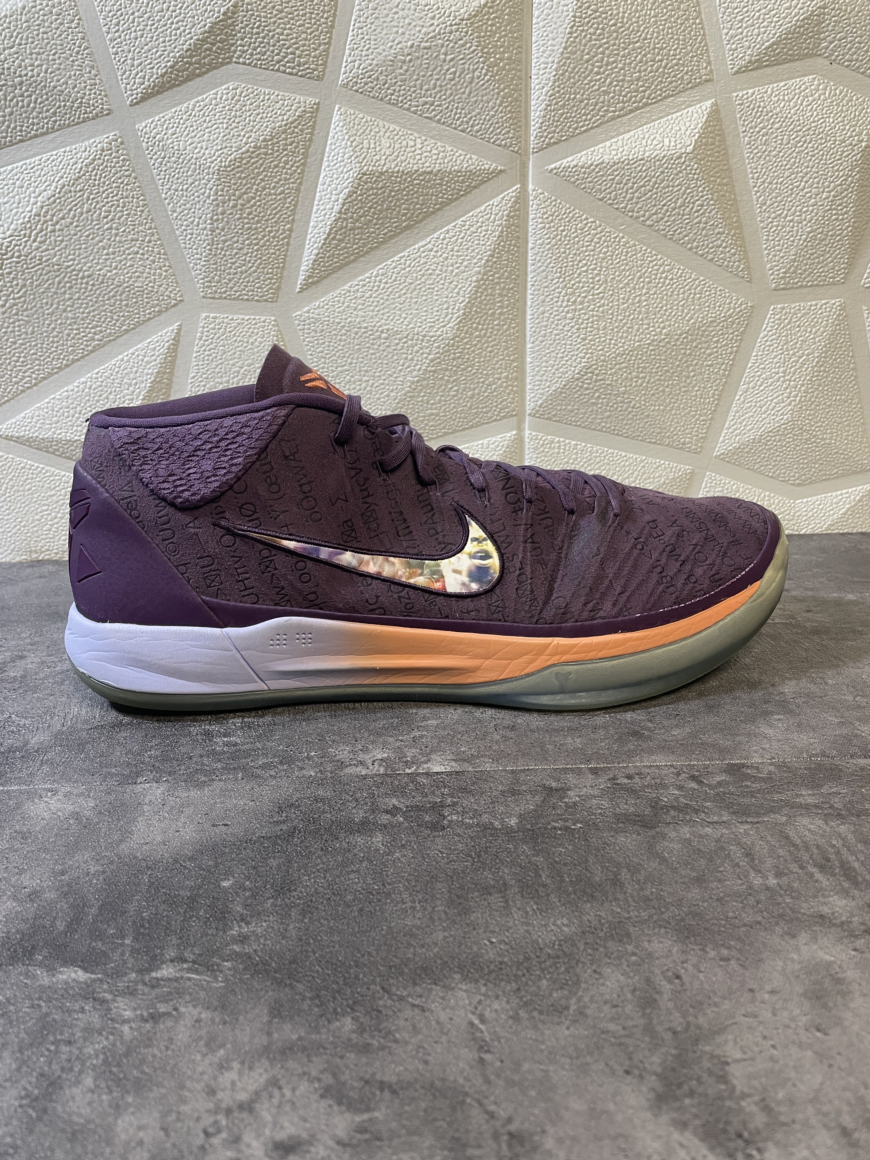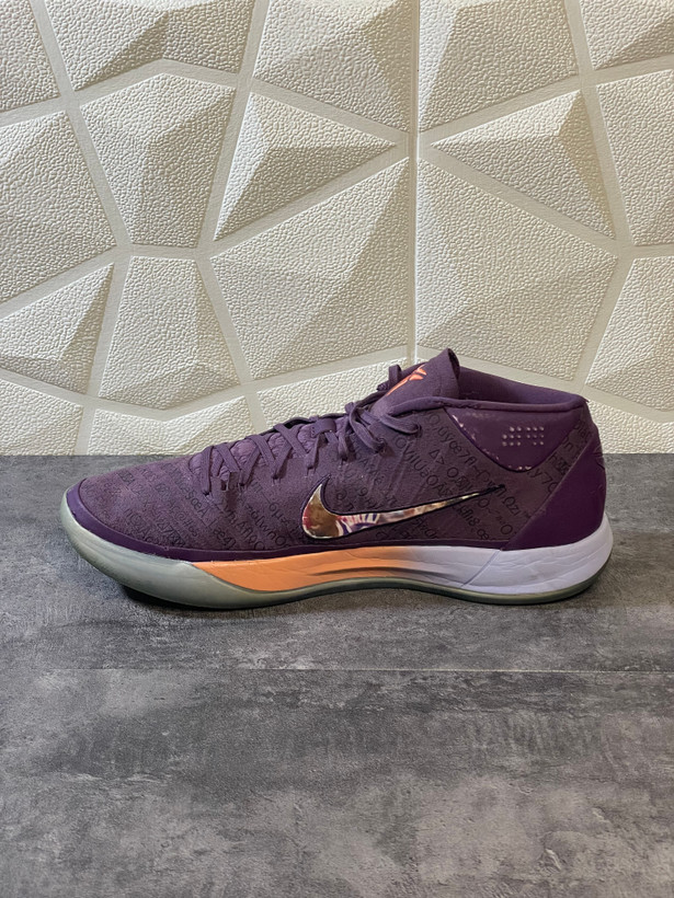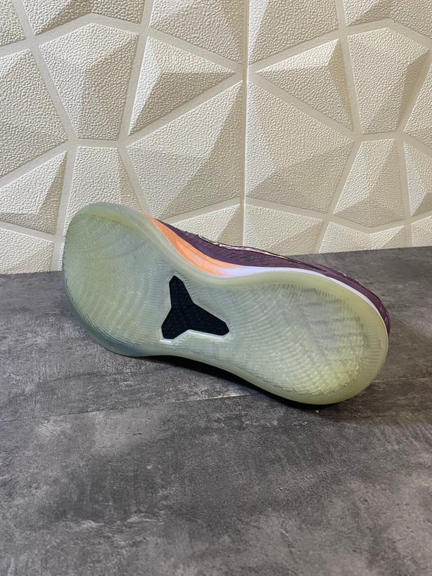 طراحی زیره: دارای زیره شفاف (Icy Blue) و میانزیره نارنجی رنگ که تضاد جذابی با بدنه تمام بنفش ایجاد کرده است.